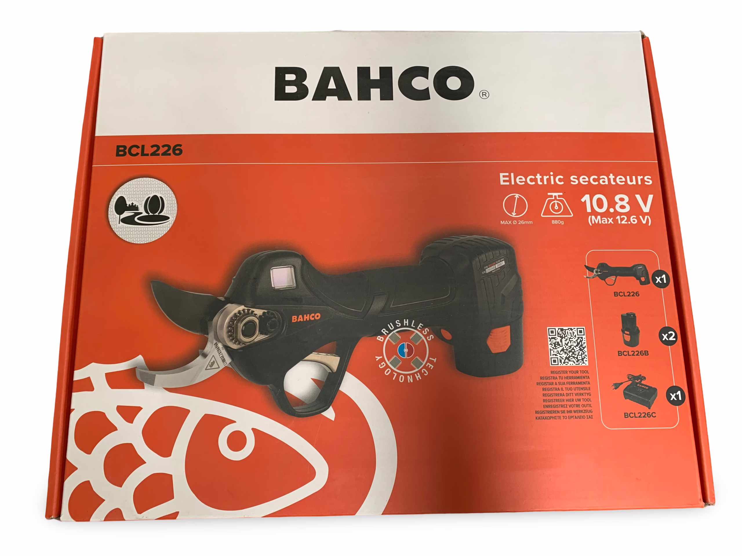 La Bahco BCL226 es una tijera de poda eléctrica con batería de litio (10,8 V, 2,5 Ah / 27 Wh) diseñada para cortes rápidos y limpios en vid, frutales y ramas delgadas. Su cuchilla de acero SK5 tiene una capacidad de corte de hasta 26 mm, lo que la hace perfecta para tareas de poda frecuente con gran calidad.