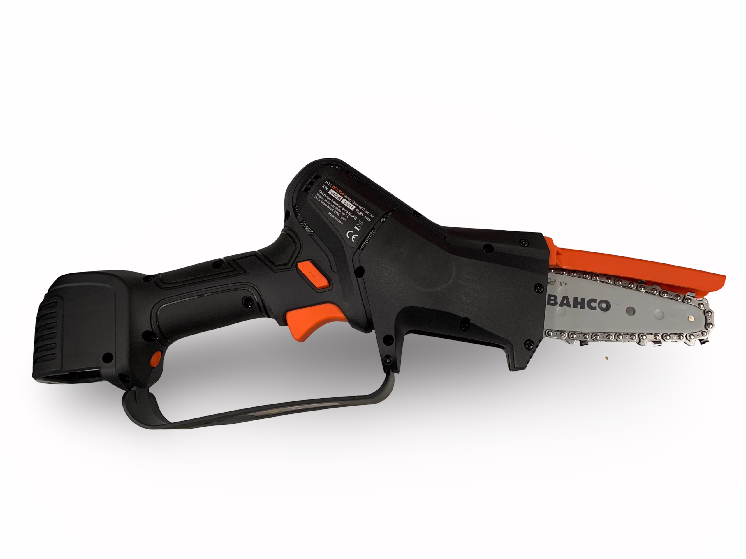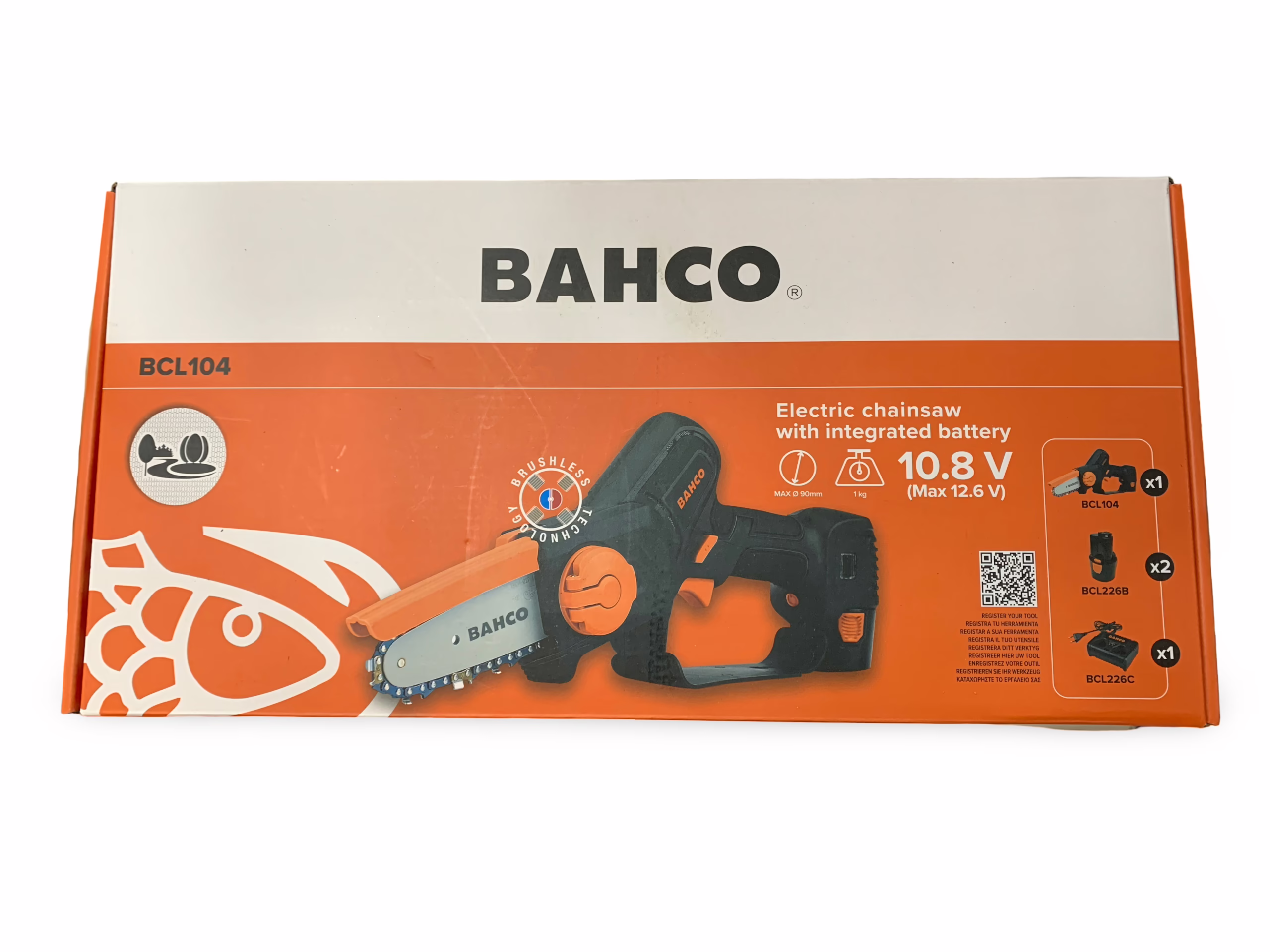 Incluye Motosierra compacta Bahco BCL104 – 300 W brushless, corte hasta 90 mm, diseño sin cable para poda ligera con total libertad 🔋🌳