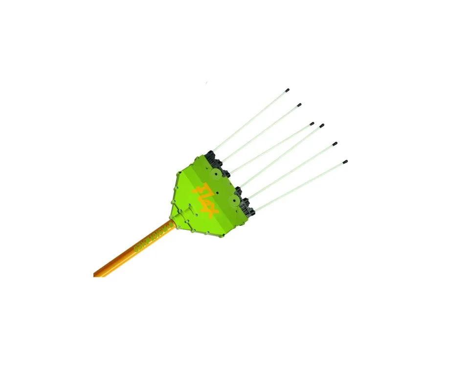 Cabezal con varillas flexibles de fibra de vidrio diseñado para agitar sin dañar el árbol ni la aceituna.
